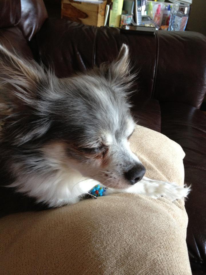 All tuckered out after her big walk with Papa